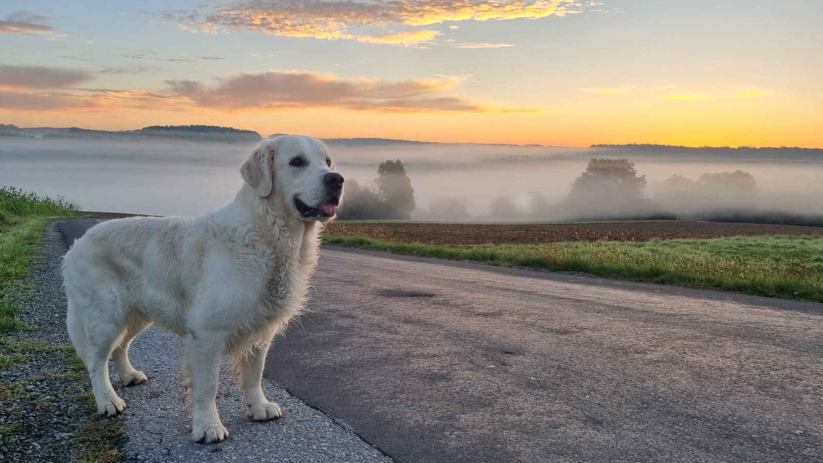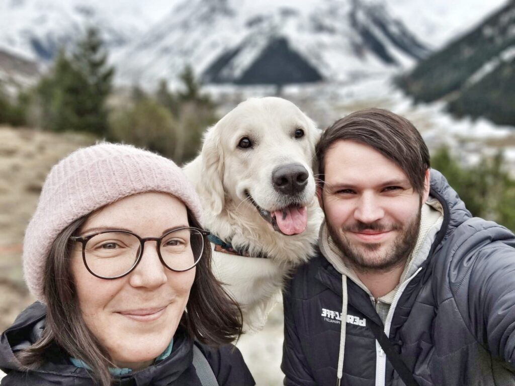 Marlene und Johannes mit unserem Golden Retriever Digby.
